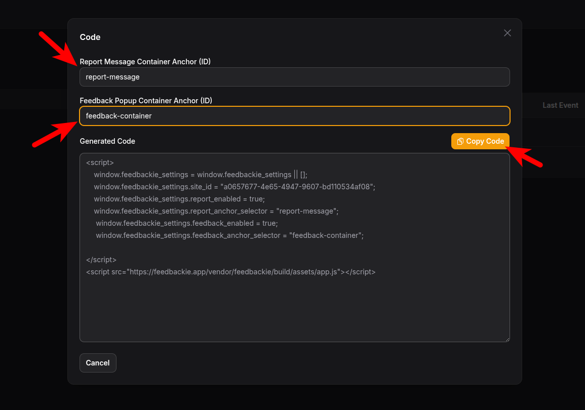 Next, you need to copy the generated code and paste it into the website's footer on those pages where you want to use the tool.